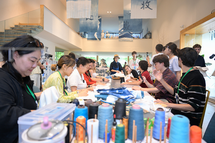 大家在工作室主理人欧阳才俊的指导下,体验拓印和上色的奇妙过程:铺纸、按压、施墨,每一个步骤都做得一丝不苟。来自俄罗斯的伟亚一边体验上色一边说道:“我现在感觉很放松,画画的时候特别平静。”