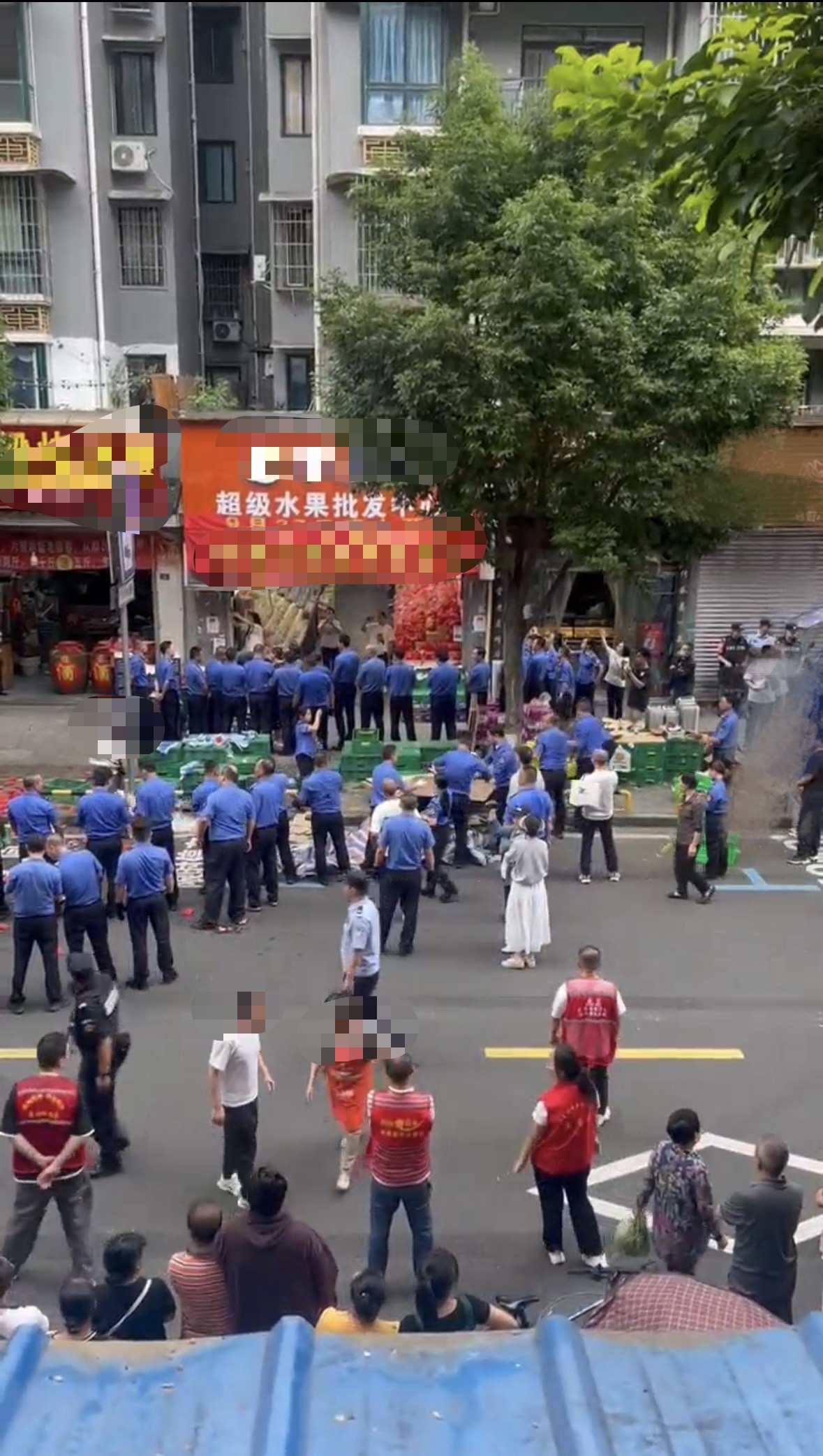 视频显示德邦国际,当天下午,多位执法人员整治一家水果店占道经营时遇到阻碍,多人与执法人员发生肢体接触,一男子将水果摊掀翻在地。视频内有人反复呼喊:“城管打人了”。